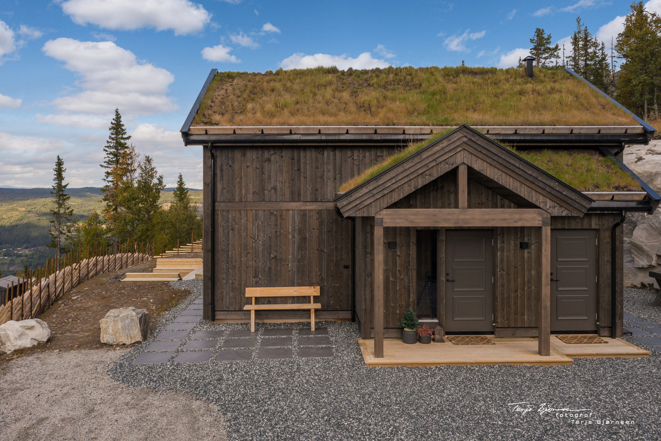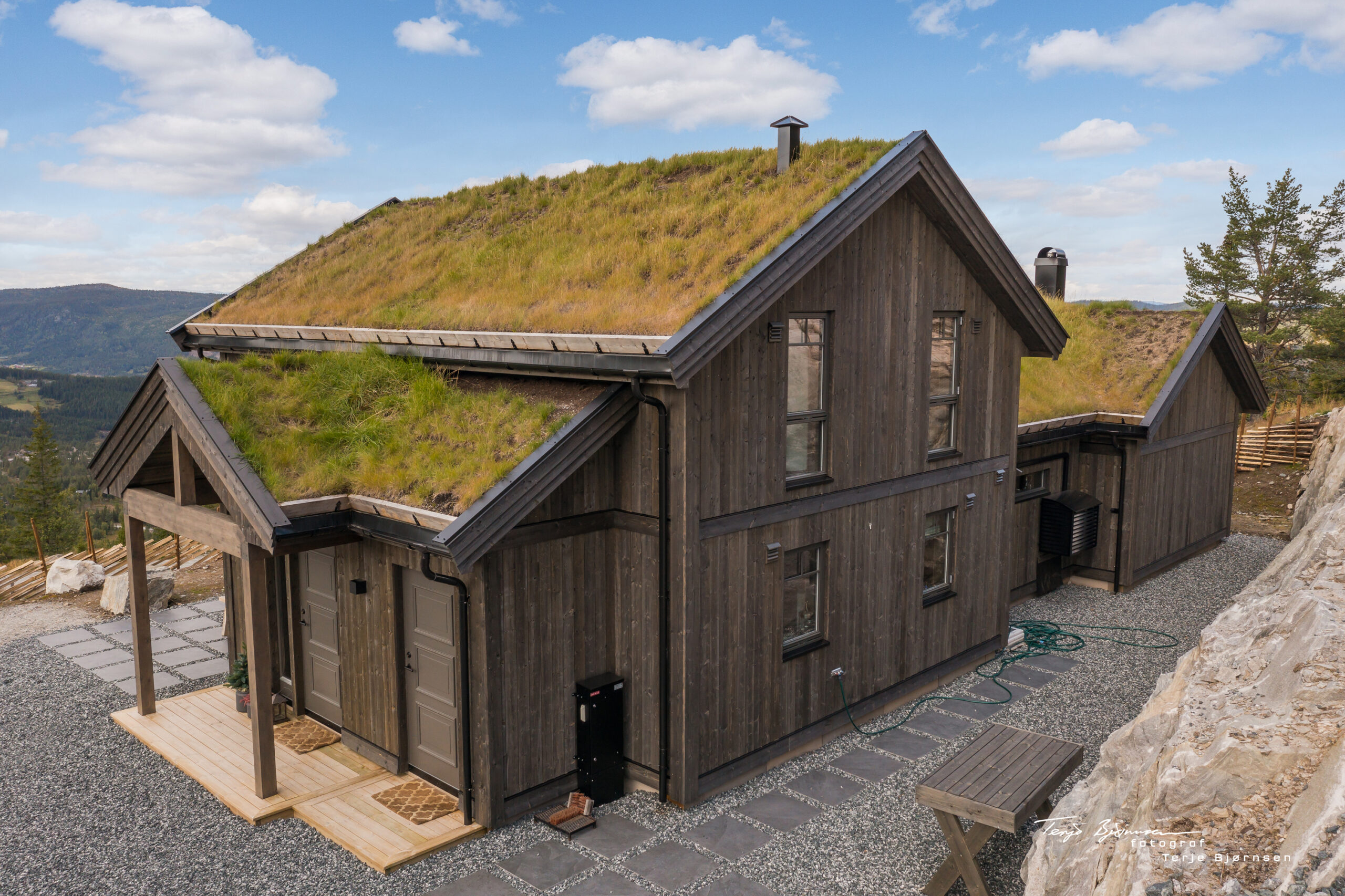 Byggesettet leveres på tomten og våre snekre gjør den ferdig utvendig og nødvendige innvendige bæringer i tre.