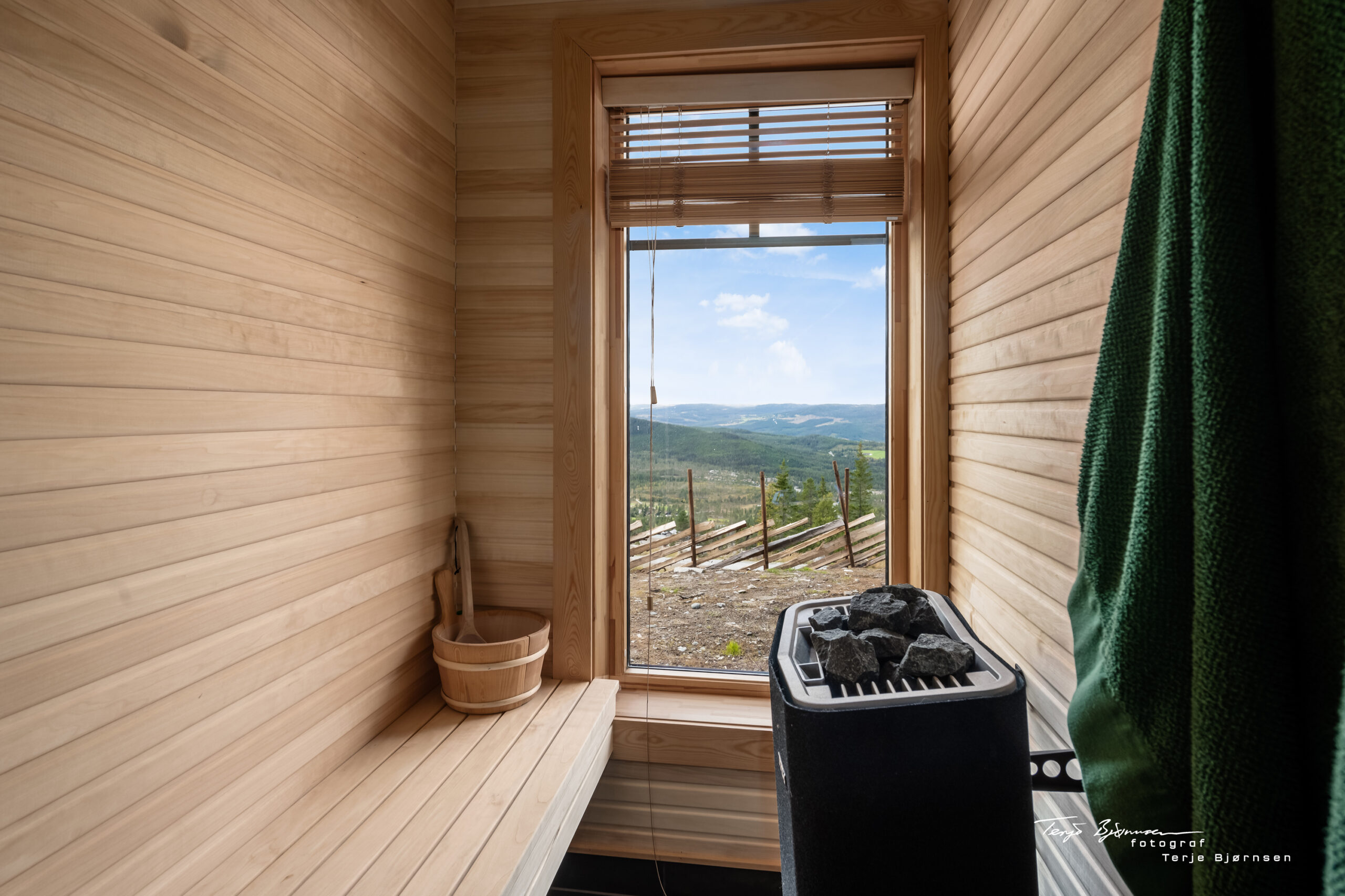 Hytta inneholder en stor stue med eget, åpent rom for kjøkken, bod med egen inngang fra utsiden, garasje, bad med praktisk inngang fra entrè som også kombineres med vaskerom og tekniske installasjoner, et bad nr. 2 med badstue og to soverom. Oppe i 2 etasje kommer du inn i en loftstue, 2 soverom og en innvendig bod.